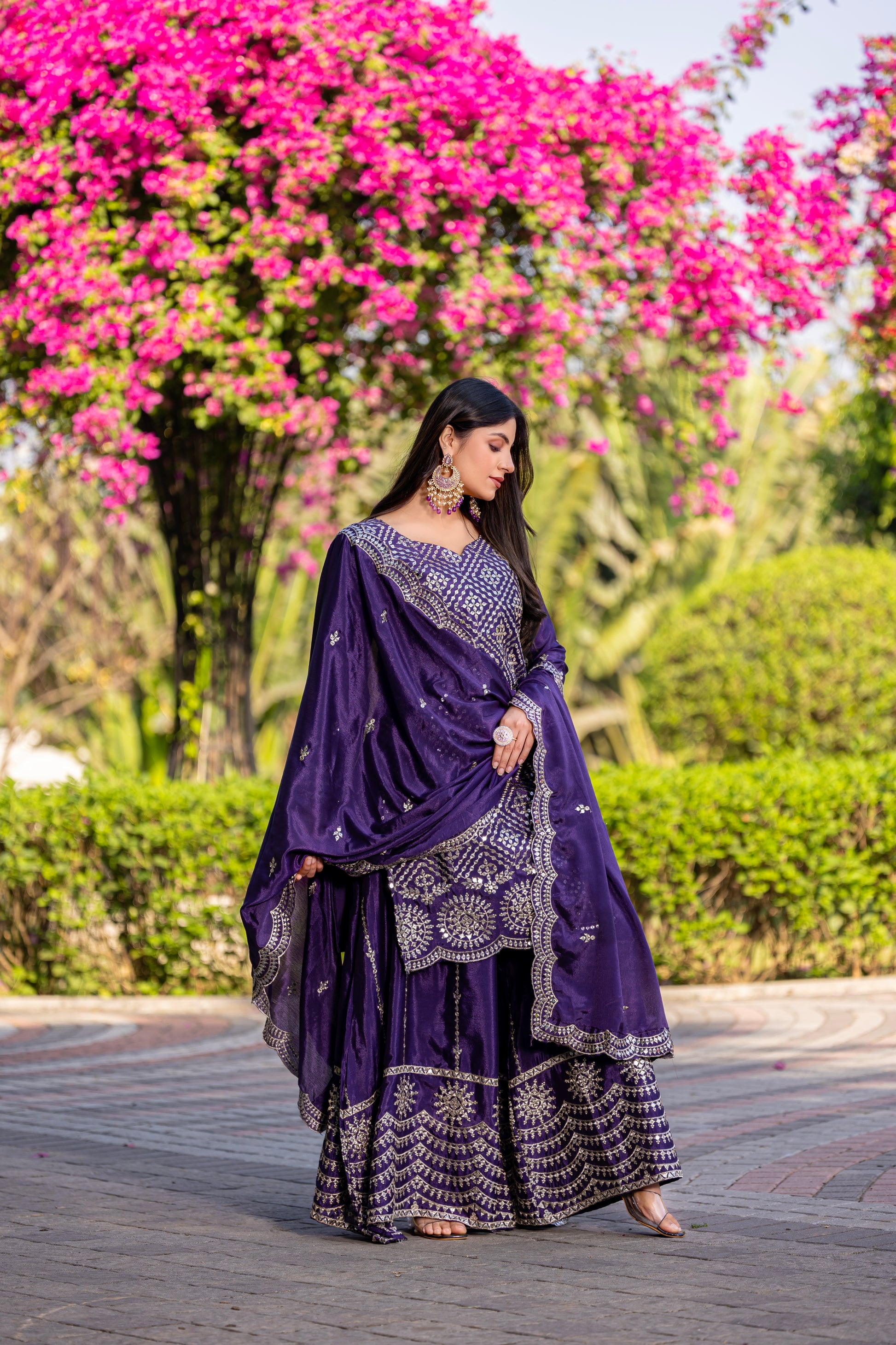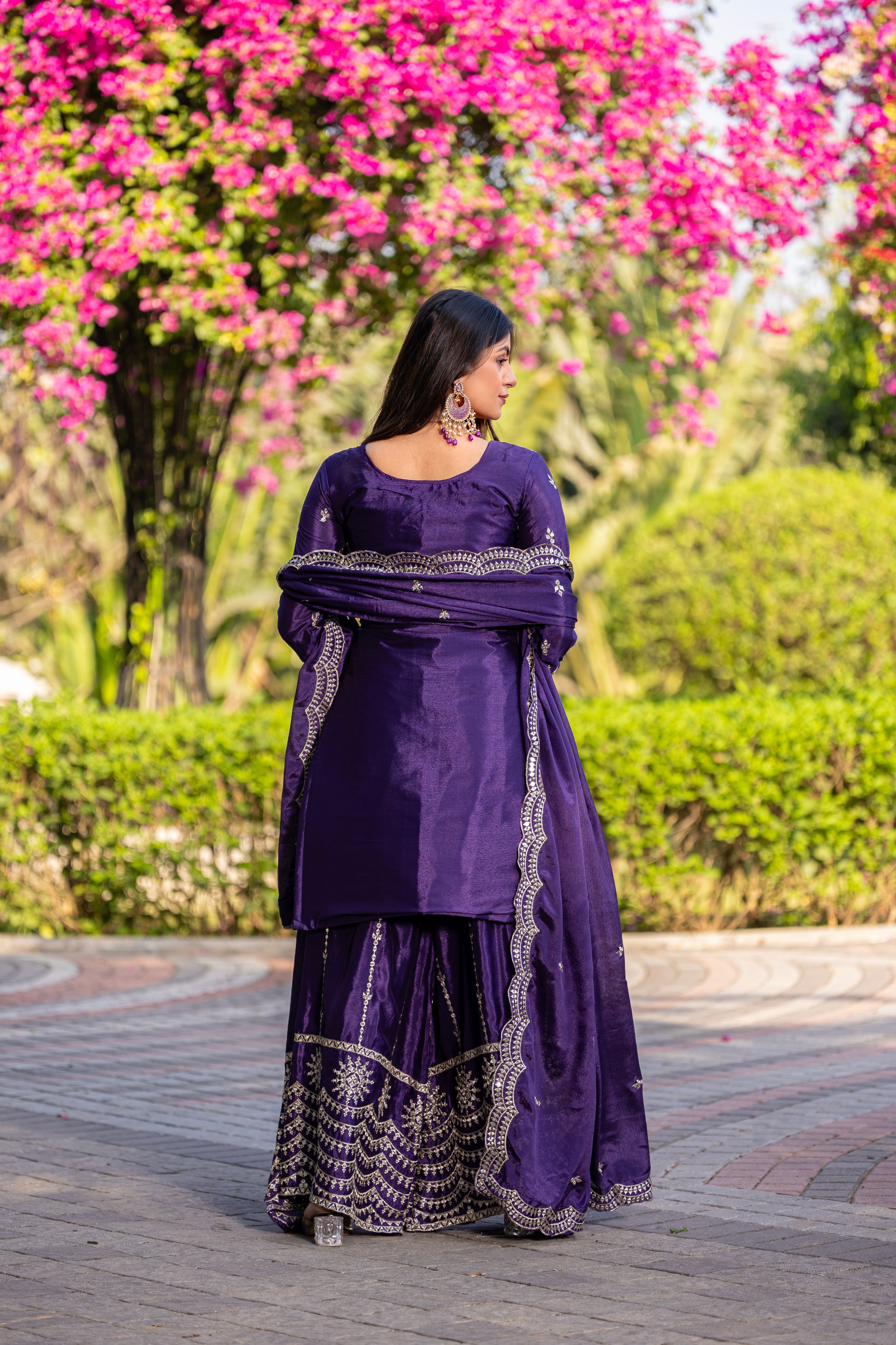 Royal Purple Embroidered Sharara Suit with Dupatta