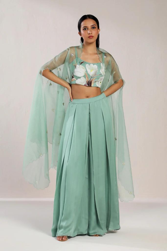 TRANDY FLORAL TOP AND PLEATED PLAZZO SET